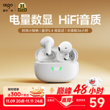 爱国者(aigo)无线蓝牙耳机 半入耳式 超长续航70小时 游戏运动降噪耳机 适用于苹果小米手机 T50 冰釉白